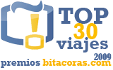 Los apuntes del viajero es un blog relativamente novato, pero en los pocos meses que lleva «en el aire» ha tenido la fortuna de ser frecuentado por los mejores bloggers en la temática de viajes (puedes encontrar sus blogs en mi lista de recomendados) y por muchos usuarios anónimos que pasan por aquí y aprovechan lo que les parece útil, pasan un rato entretenido o, para qué vamos a negarlo, pasean la mirada sin encontrar nada que les atraiga. En todo caso, a unos y a otros les envío mi agradecimiento por darme voz en en la red. Por cierto, acabo de ver una lista provisional donde me sitúan 17º en la clasificación de «mejor blog de viajes». Me vale con quedar entre los 100 primeros :)